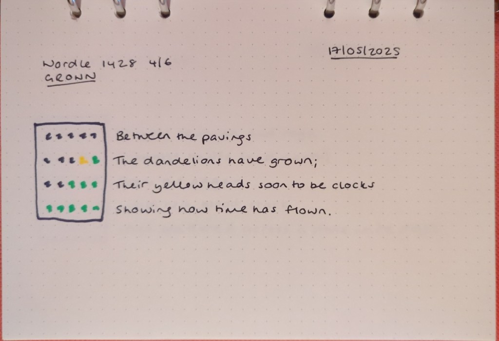 Wordle prompt poems – May 2025 Click on an image to view poems as a slideshow. Share this: Share on X (Opens in new window) X Share on Facebook (Opens in new window) Facebook Like Loading... Related