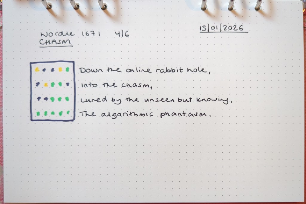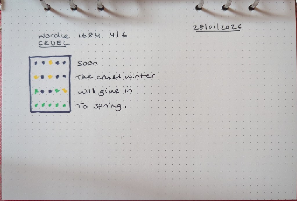 Wordle prompt poems – January 2026 Click on an image to view poems in a slideshow. Share this: Share on X (Opens in new window) X Share on Facebook (Opens in new window) Facebook Like Loading... Related
